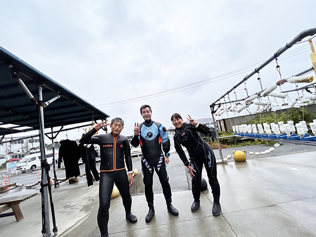 あいにくの雨模様でしたが、水中は透明度10~15m、水温25度とグッドコンディション!