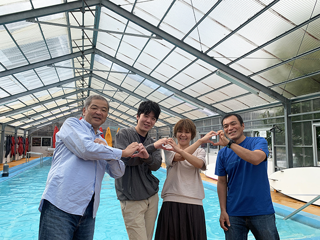 まずは温水プールでのスキル開発。アシスタントのインストラクターやダイブマスターの方にもご一緒していただいて5名チームでセルフレスキューや疲労ダイバーへの対応などのスキルを練習しました。
