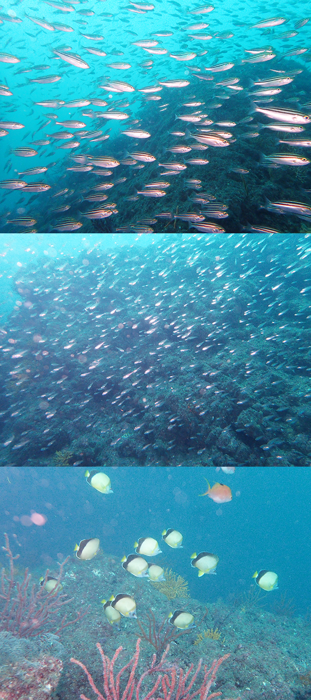 "ツブ根" も "オオタカ根" もまるで生け簀の中を潜っているような魚影の濃さでした!
