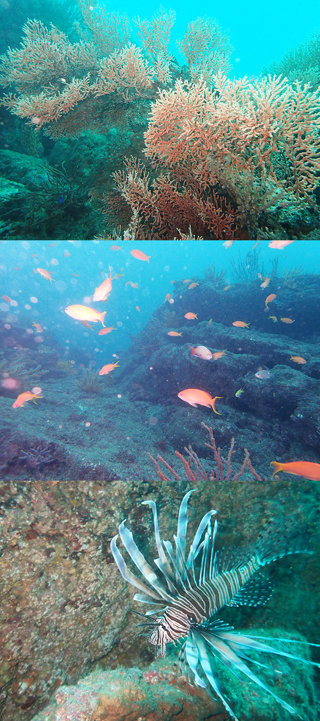アカオビハナダイやキンギョハナダイの群れもとても綺麗でした。