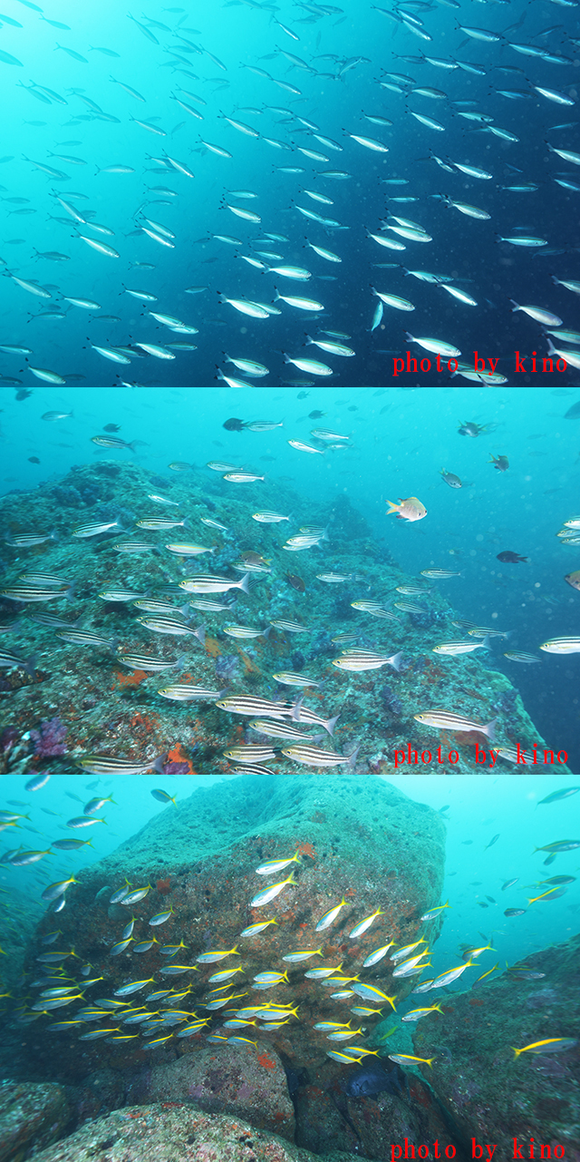 シャワーのようなイサキやタカサゴの群れ、川のように流れてくるタカベの群れはとても綺麗ですね。