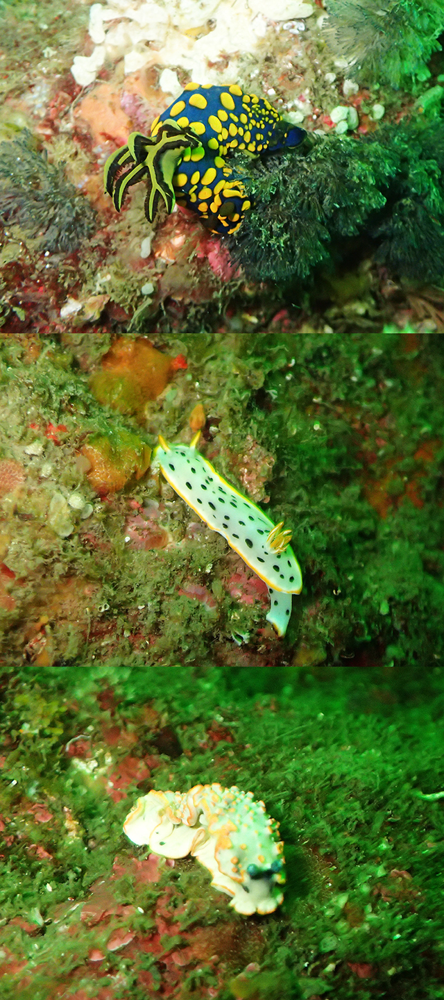 目に優しいサイズ(笑)のサガミリュウグウウミウシのペアやシラライロウミウシ、ハナオトメウミウシなどを見つけることができましたよ。
