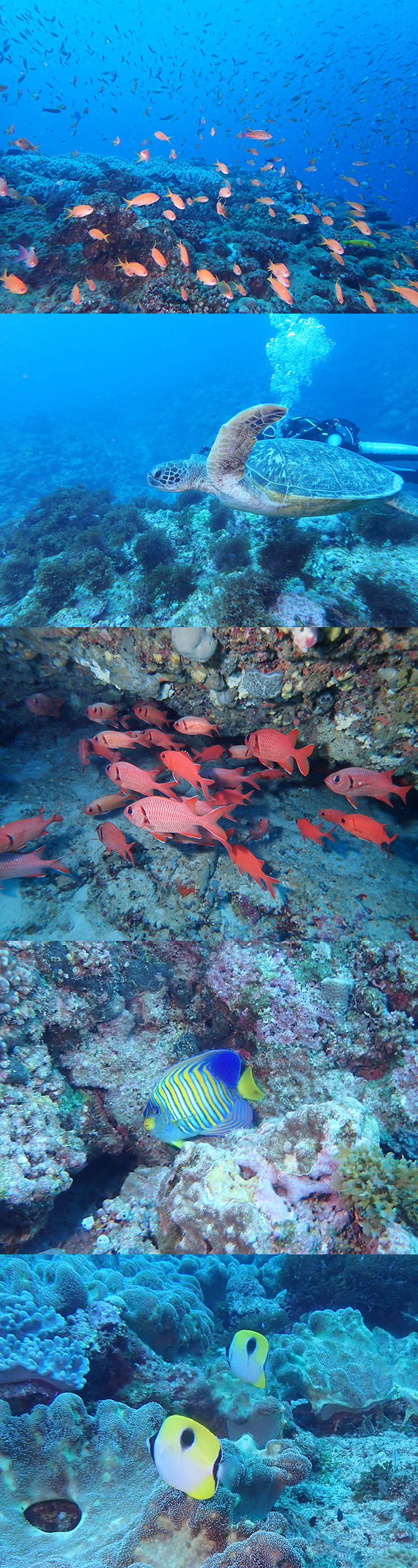 あとは地形ポイントやカラフルな魚たちをじっくり観察・・・といってもいつも流れているエラブの海です。
