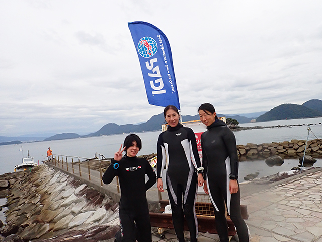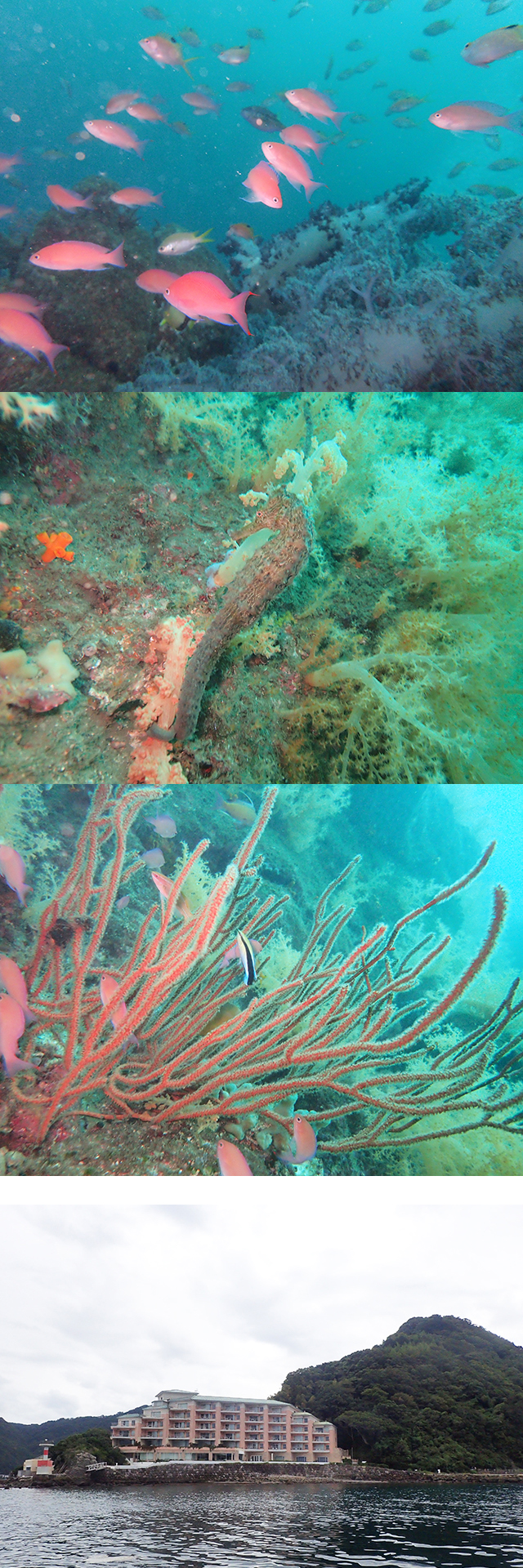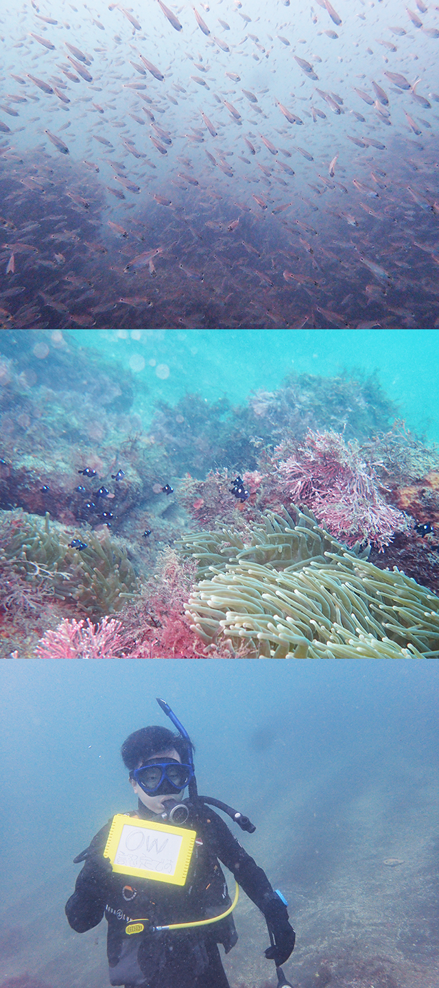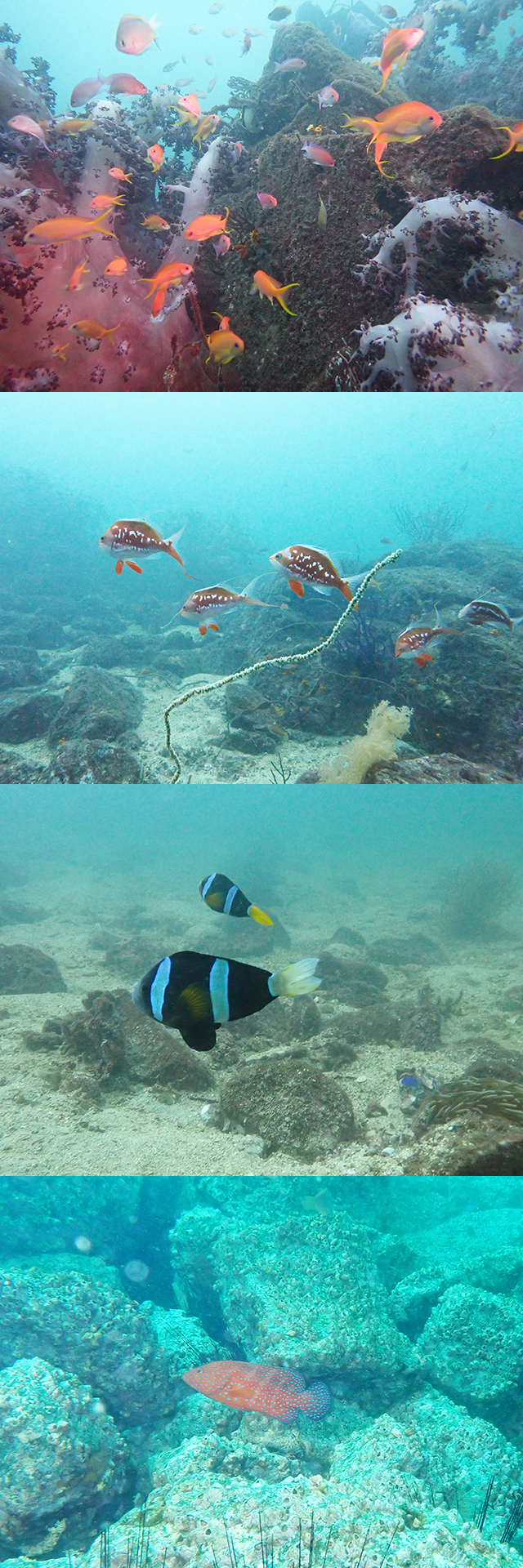 あいにくの雨模様でしたが、水中は透明度10~15m、水温25度とグッドコンディション!
