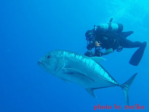 今年は小潮まわりのスケジュールで少し心配しましたが、どのポイントでも大物続出でした。! 特に今年はロウニンアジが多かったですね。初日の “運瀬” では体長2m近い大きな個体に遭遇してビックリしました! マンタやイソマグロ、ギンガメアジの群れなどなど、今まで8回開催したこのツアーの中でもかなりの当たりだったように思います!